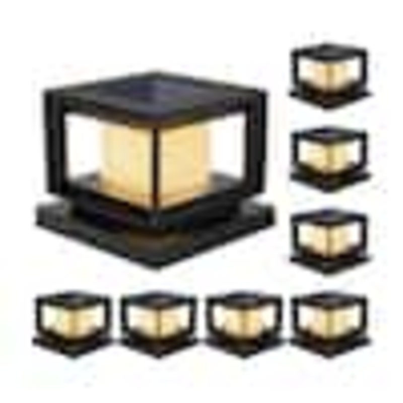 Afoxsos 8-Pack Black Solar Post Lights Outdoor Waterproof Fence Cap Deck Lights w/ Diamond Effect for 4×4 6×6 Wooden Vinyl Posts 59SA05626