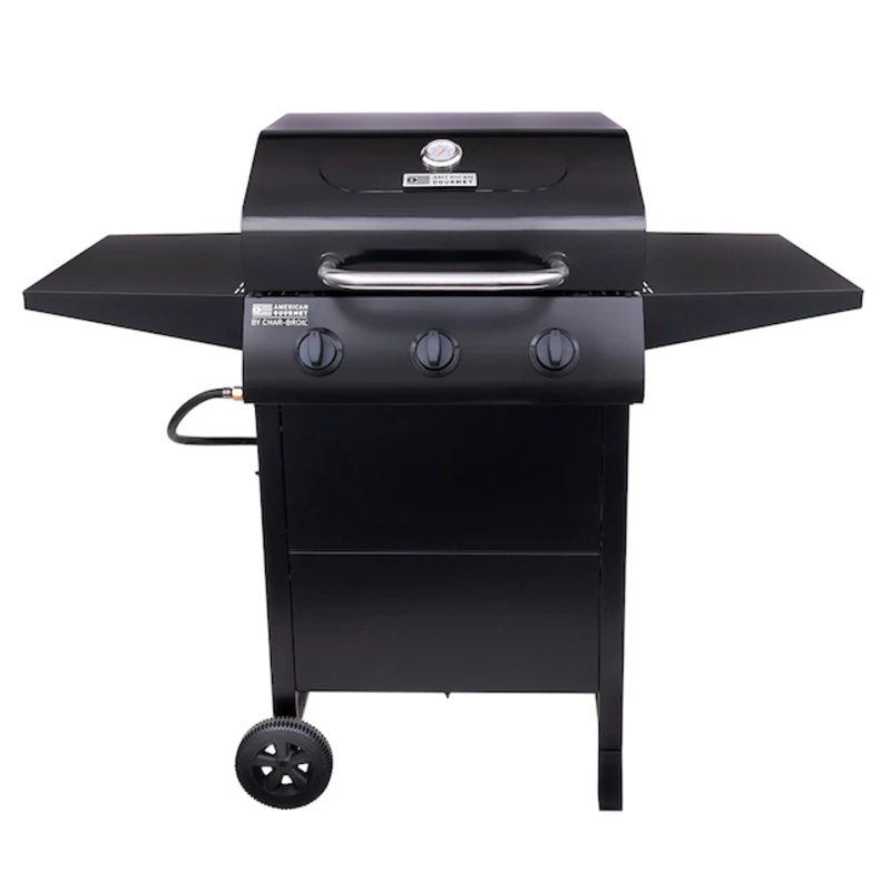 American GourmetBlack 3-Burner Liquid Propane Gas GrillThe American Gourmet 3-Burner Gas Grill features a sleek black design with 30,000 BTUs of cooking power and 454-square-inches of total cooking space to grill up to 25 burgers. This full-size grill with