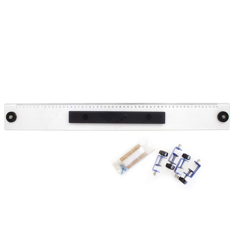 The Artway Parallel Motion Ruler is a cost effective and practical alternative to a conventional drawing board – it can be assembled with ease on any flat surface such as a kitchen table or desk and disassembled just as easily. The two-pulley parallel ruler is quick and easy to assemble (Comes with all fixings for set-up inc. the cord assembly for clamps and pulleys) as well as being easy to dismantle and pack away after use – it comes with a cloth slip case for protection while being stored or transported. 60cm length and constructed with heavy and durable acrylic – in a transparent finish for maximum visibility. Features engraved metric rule ‘cm’ markings along the top edge (54cm) and a comfortable centre grip to smoothly guide the drafting parallel bar up and down your chosen surface.Comes with a protective cloth slip for storage and transportation. Clear acrylic for excellent visibility of drawings at all times. Easy to assemble and disassemble. Easily attach to any flat surface to create a functioning drafting or drawing board. Artway 60 cm length universal parallel motion ruler with engraved metric scale of 54cm.Date First Available: February 8, 2021. Manufacturer: Artway. Item Weight: 13 ounces. Best Sellers Rank: #1,425,523 in Arts, Crafts & Sewing. Customer Reviews: 5.0 5.0 out of 5 stars 1 rating 5.0 out of 5 stars. : B08W3F8J4L. Item model number: 2303277. Package Dimensions: 26.77 x 3.94 x 0.39 inches.