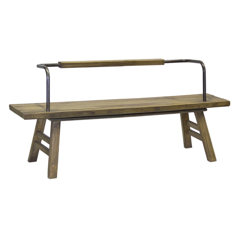 This casual bench adds a modern vibe to an entryway, living room or bedroom with its sleek metal frame baskrest and stylized angled legs.Made from wood and metalMeasures 63 inches in length30 inches in heightPerfect addition to any settingDimensions: 63 x