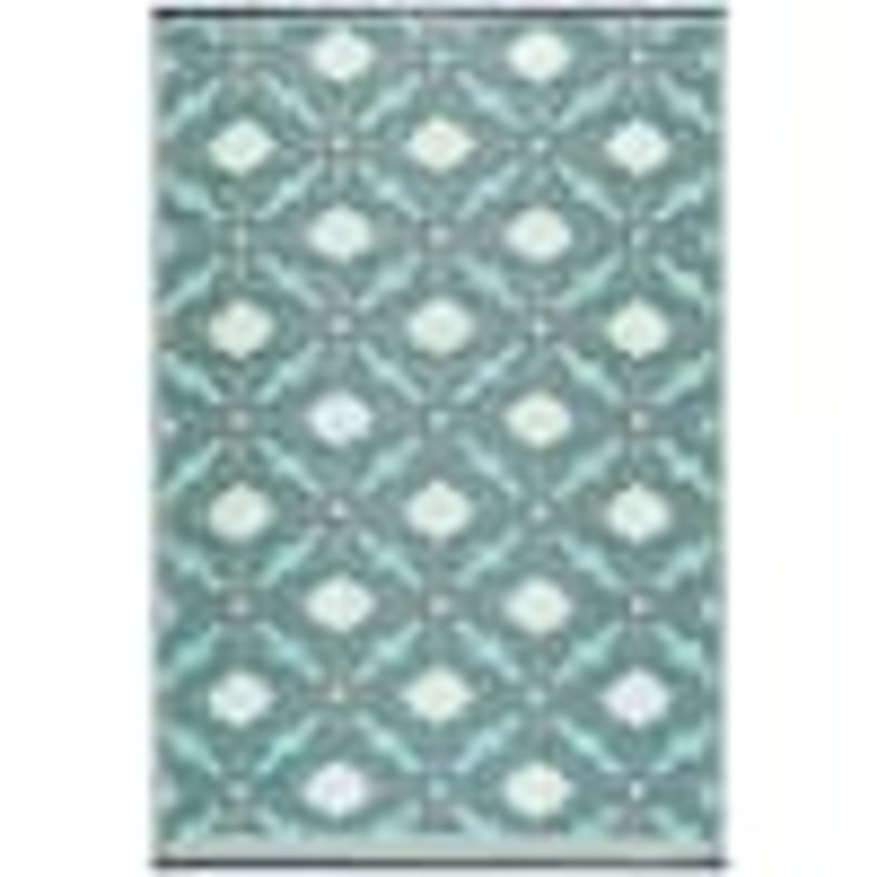 Beverly Lightweight Trellis Reversible Plastic Indoor/Outdoor Area Rug is available in green/blue colored design and comes in different sizes; area rug 4 ft. x 6 ft. (3 ft. 11 in. x 5 ft. 11 in.), 5 ft. x 8 ft. (5 ft. 3 in. x 7 ft. 6 in.), area rug 6 ft. x