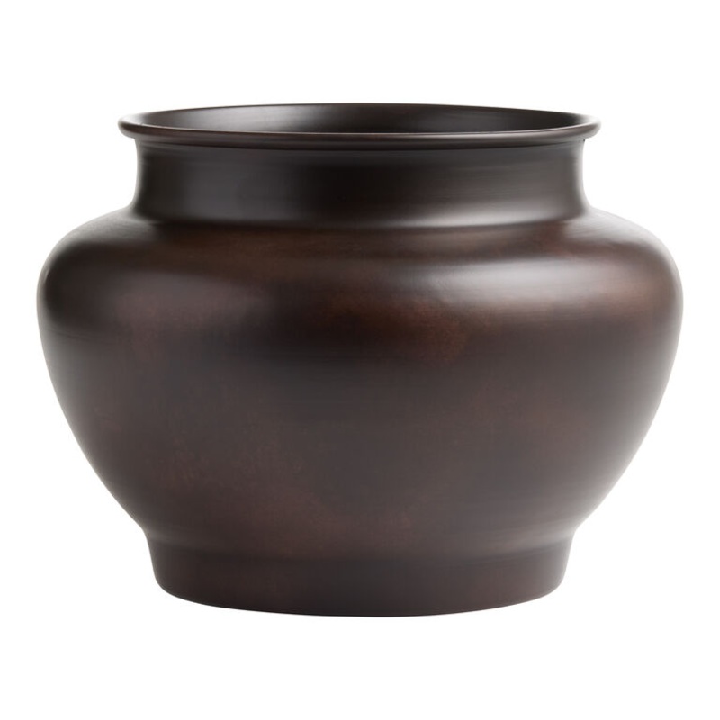Warm any corner with the rustic beauty of this curvy planter, fashioned from iron and hand finished by artisans in aged, brown-bronze hues. Each pot has a patina all its own, providing an arresting, antique-inspired look that complements any plant and elevates any decor.