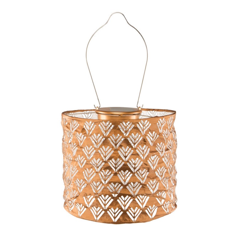 Cast captivating shadows around your patio with this drum-shaped solar-powered LED lantern – featuring a repeating punched-chevron design. Handmade from durable fabric with a stainless-steel hanging handle, it’s designed to be weather-resistant for outside use. Hang it in your yard to soak up sunlight and provide automatic illumination after dark. Once lit, the glowing lantern adds a chilled and modern aesthetic to your outdoor space.