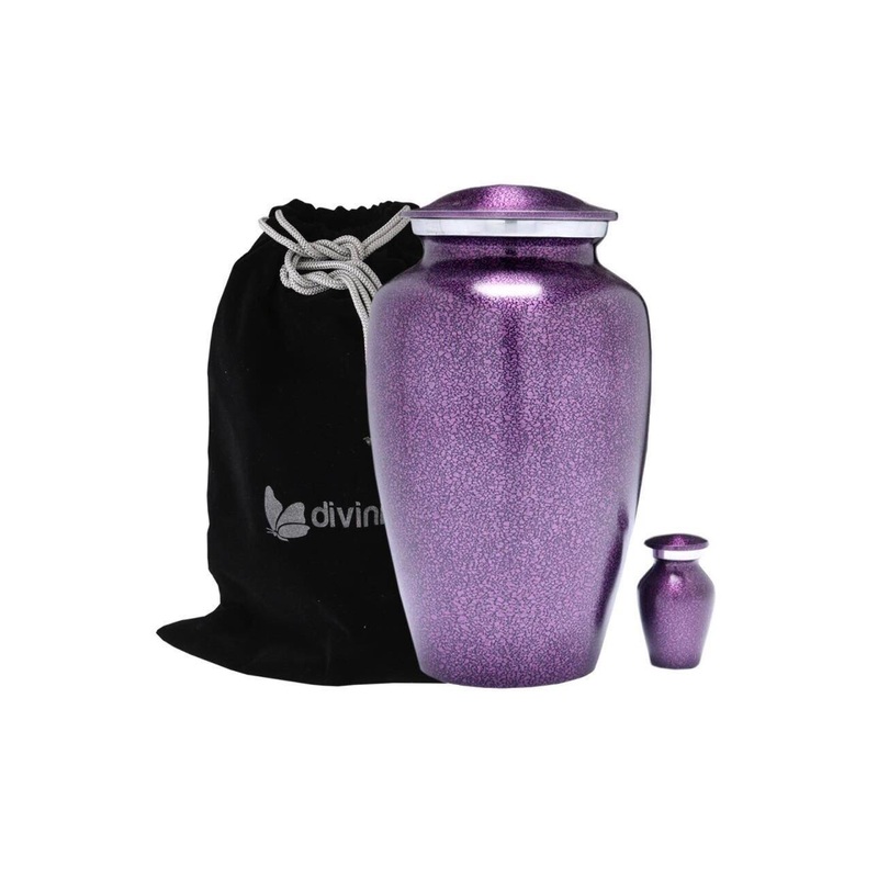 Divinityurns Purple Droplet Cremation Urn Set – Purple Urn – Affordable Handcrafted Adult Funeral Urn for Ashes – Large Urn with Free Keepsake Deal