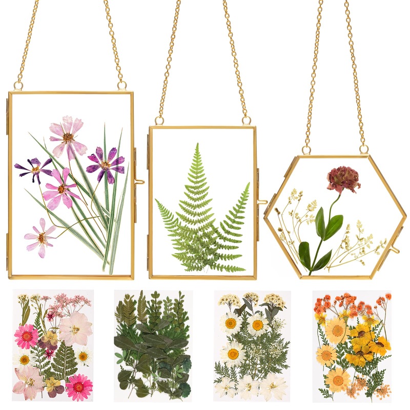 WHAT IS A DOUBLE GLASS FRAME TO YOU? A frame for display photo? Pressed flowers? Cherished memories? Artwork? How about something that combines all of the accessories! Our flower frames wall decor set contains 3 frames, 68 pieces of pressed flowers, a twee