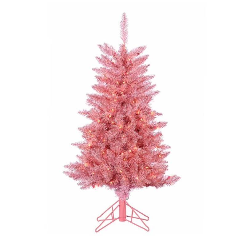 Pre-strung with 150 clear white lights, this full-profile artificial Tuscany tree features pink tinsel branches that sparkle and shine in the light. This uniquely colorful holiday tree is easily adjustable with fully posable branches and tips that help you create the perfect living room centerpiece. A durable and low-maintenance investment, this faux Christmas tree will be a bright highlight of your winter decor for years to come.