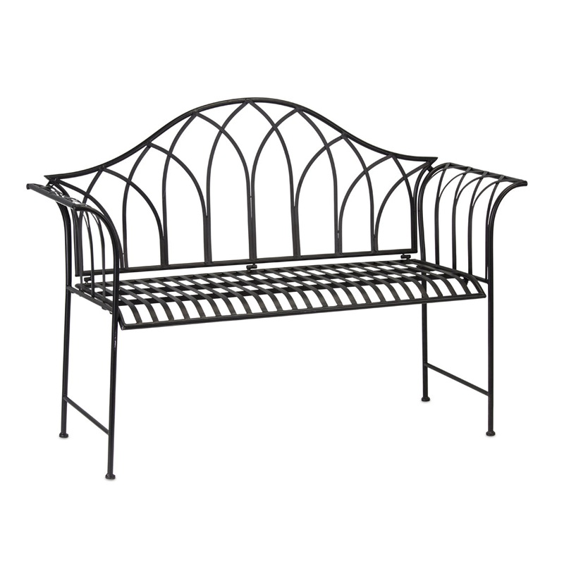Complement your outdoor dcor with our garden bench. Traditional styling with slatted seat accented by a decorative lattice back and gently sloping armrests.Made from ironMeasures 36.5 inches in height51.5 inches in length, 18.25 inches in diameterPerfect a