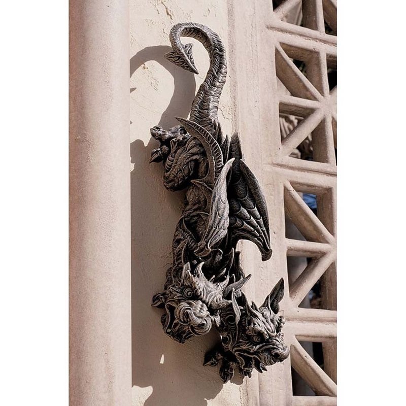 This exclusive two-headed creature with arched wings and menacing mouths is cast in quality designer resin with a faux stone finish. Perfect for new or veteran collectors, whether hung on a garden wall or displayed flat with your other Gothic collectibles.