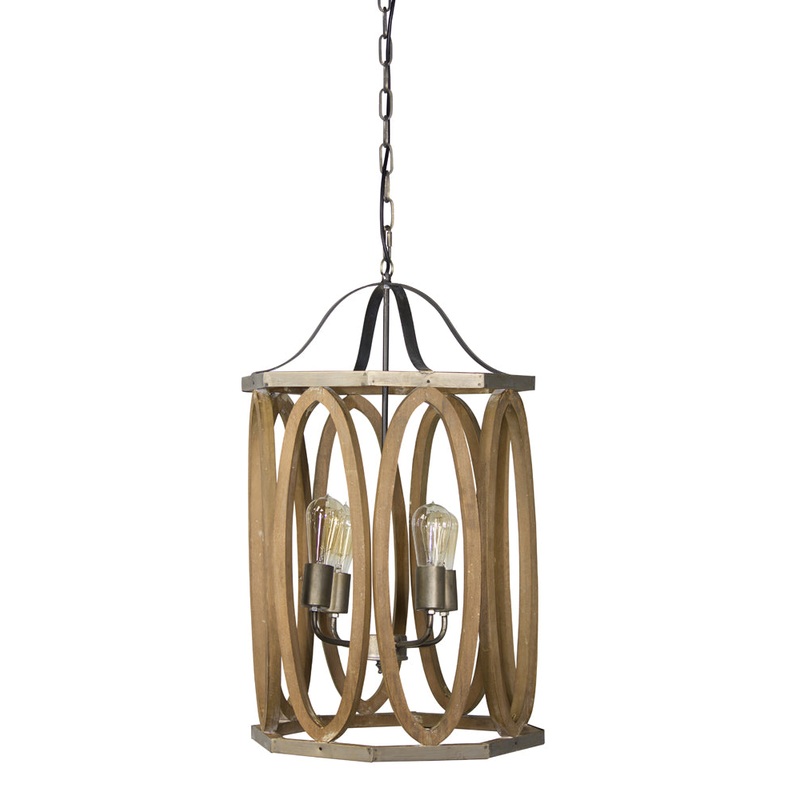A sophisticated blend of rustic textures, this 4-light pendant has it all. Four candle arms are surrounded with an shade made of oval wood rings set within the metal octagon framing.Provides maximum illuminationUL listed for indoor use onlyUses four Max 40