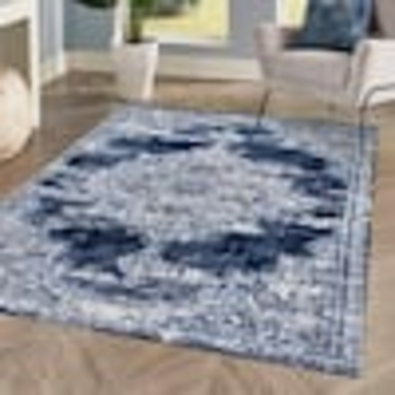 This elegant rug's ornate medallion and arches are inspired by traditional Persian rug patterns. Warm, blue and navy are the perfect way to update a living room, bedroom, entry or dining room. With its muted design, this versatile rug works beautifully in