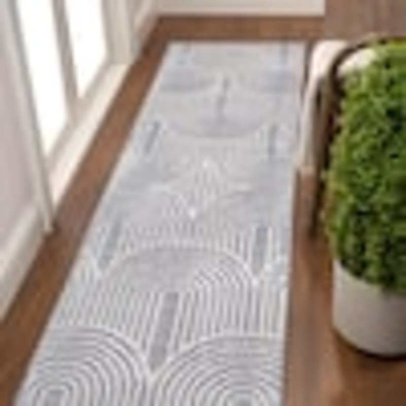 JONATHAN Y Ariana MidCentury Art Deco Striped Arches 2-Tone High-Low Blue/White 2 ft. x 8 ft. Runner Rug SND100C-28