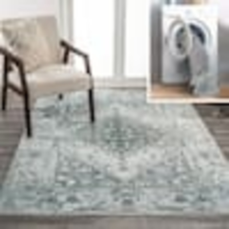 JONATHAN Y Pavel Light Gray/Blue 8 ft. x 10 ft. Distressed Medallion Low-Pile Machine-Washable Area Rug WSH317B-8