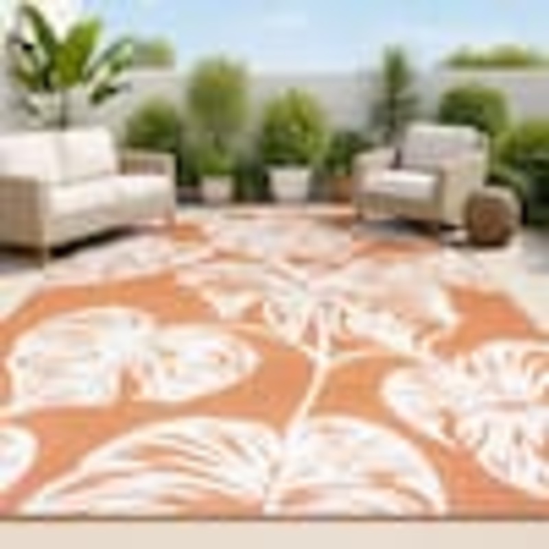 JONATHAN Y Tobago Approximate Rug Size (5 x 8 ft.) High-Low Two-Tone Orange/Ivory Monstera Leaf Indoor/Outdoor Area Rug HWC100A-5