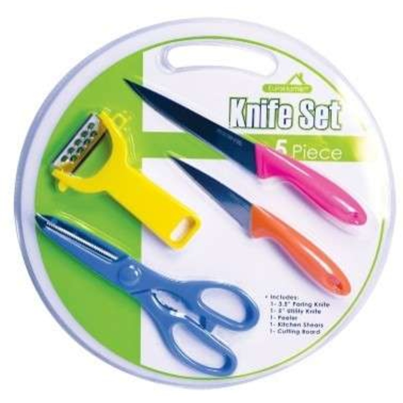 Knife Sets With Cutting Board is the ideal kitchen companion featuring quality blades and a durable board. Perfect for personal use, small businesses, donations to nonprofits, or contributing to local charities. This five-piece set comes with assorted colors, enhancing any kitchen setup with versatility. Shop in bulk and save today! Key features include quality blades and durable board Colors: assorted colors Includes cutting board Priced per set 5 units per set 24 sets per case