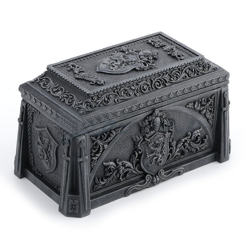 Medieval Lion Crest Trinket Box Sculpture