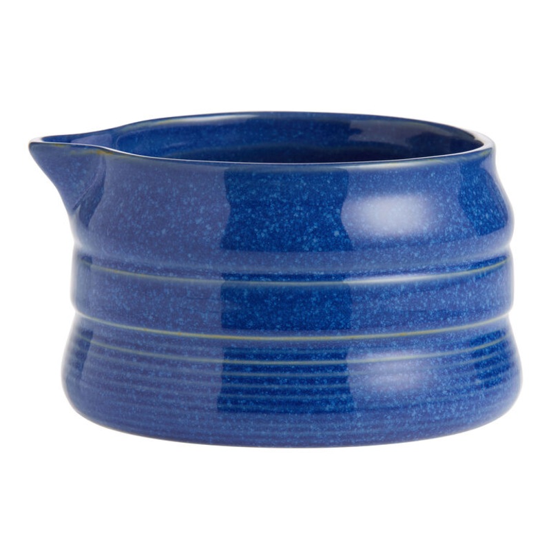 Crafted of ceramic with a ribbed exterior and pouring spout, our luminous matcha-tea whisking bowl is finished with an ombre reactive glaze. A lovely modern version of a Japanese chawan, this matcha green-tea bowl is presented in your choice of tonal color