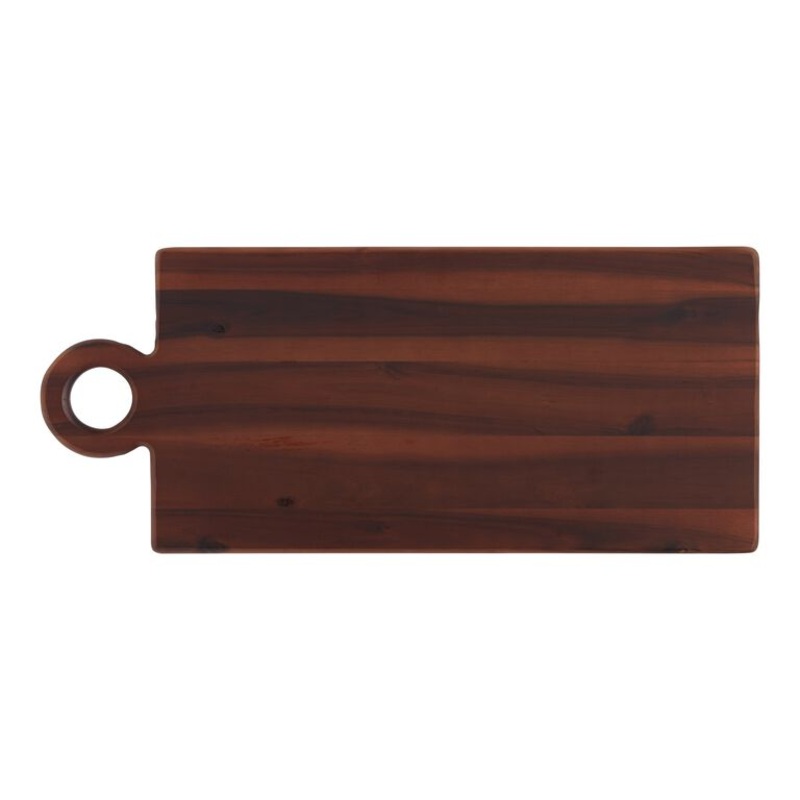 Crafted in Vietnam of acacia wood with a rich brown finish, our rectangular serving board is a rustic backdrop for artisan cheeses, antipasti and charcuterie. Durable for indoor and outdoor use, this exclusive entertaining serveware presents small bites be