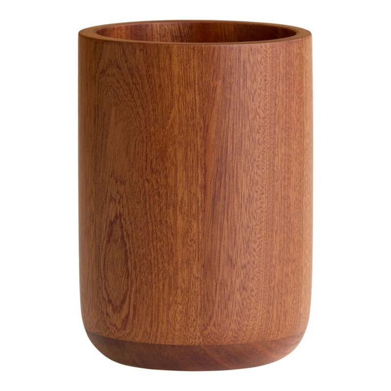 Crafted of West African sapele wood, our round utensil crock keeps cooking spoons, spatulas and other large cooking utensils organized and at the ready. Featuring a natural reddish-brown hue, sapele is a rot-resistant hardwood with gorgeous grain patterns.
