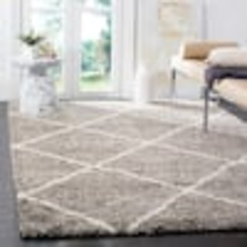 The large, grey diamonds and lush ivory pile of this Hudson shag are perfectly matched for a look that defines classic contemporary. The thick plush pile of this lovely shag floor covering is power-loomed using durable, easy-care fibers that will stay beautiful and luxurious even in high traffic areas of the home. The ideal choice to add comforting texture and a soft-underfoot feel to modern or rustic country decor.