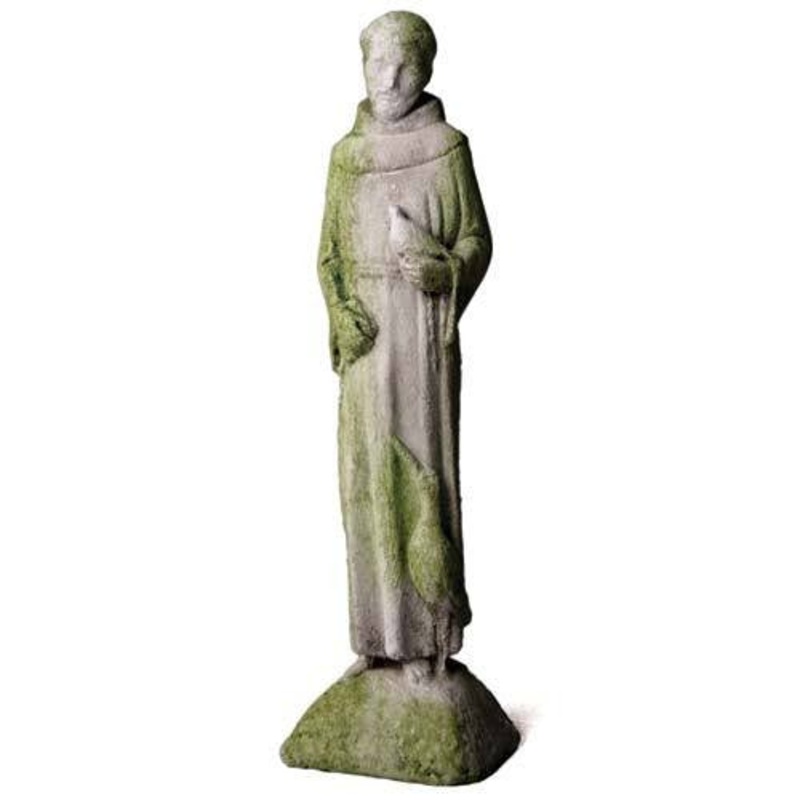 Bring a touch of serene beauty to your outdoor space with the Saint Francis of the Garden Garden Display from XoticBrands Home Dcor. This exquisitely crafted piece features stunning details that capture the gentle spirit of Saint Francis, making it a meaningful addition to any garden or patio. Handcrafted in the USA from durable fiberglass, this statue boasts an elegant White Moss finish, perfectly blending artistry with nature.