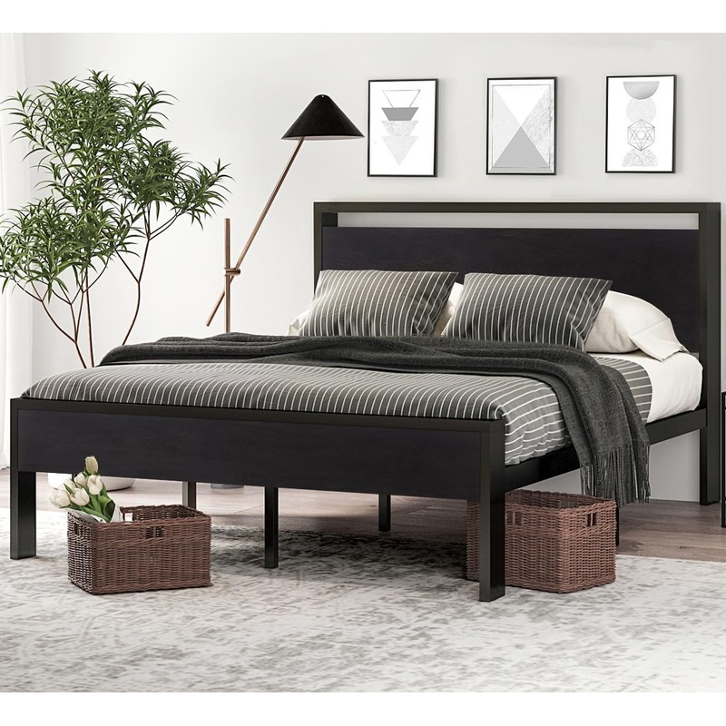 • Unique DesignThe combination of rustic style headboard and footboard with retro frosted metal slats creates a strong industrial/rustic flair, adding an industrial and unique touch to your room. The headboard consists of a waterproof & scratchproof wood board.