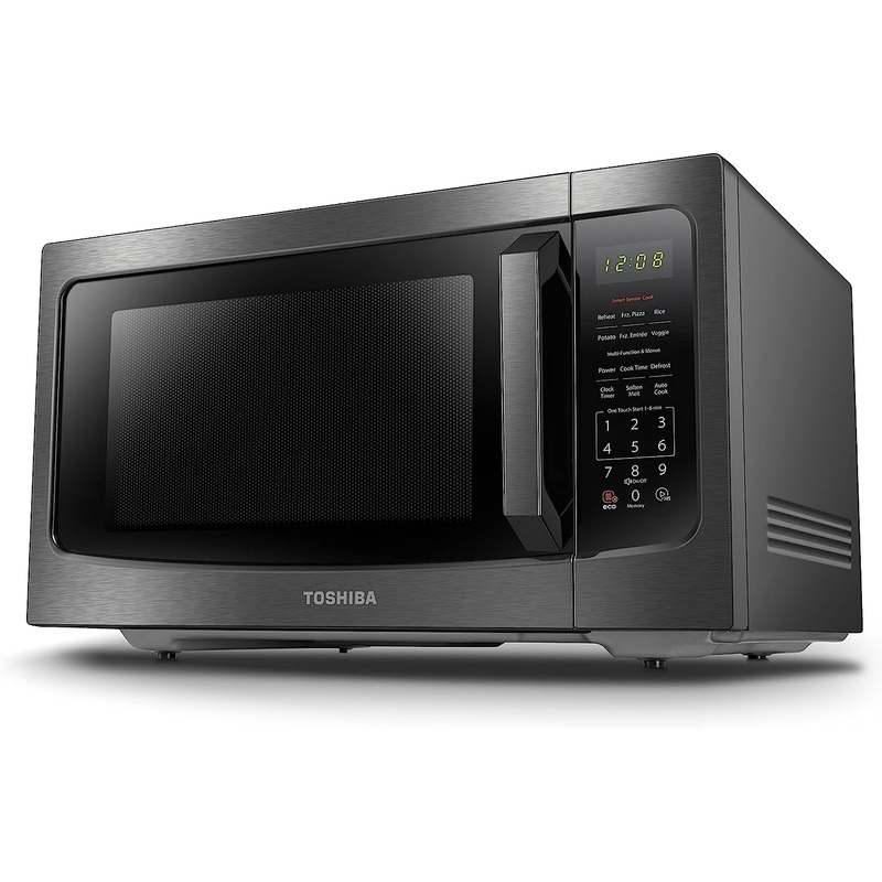 TOSHIBA ML-EM45P(BS) Countertop Microwave Oven with Smart Sensor and Position Memory Turntable, Memory Function, 1.6 Cu.ft with 13.6 Removable Turntable, Black Stainless Steel, 1200WBetter texture with sensor menus This 1200-watt high power countertop micr
