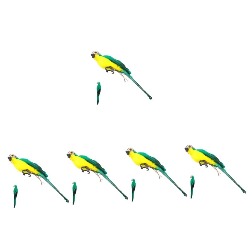 Package Include 5 x parrot model Characteristics -Size:20.00X5.00X4.00cm/7.86X1.97X1 mini birds. -Material:Foam, synthetic material desk topper -Color:Green artificial parrot models - Every detail is carefully crafted, so you experience the high durability