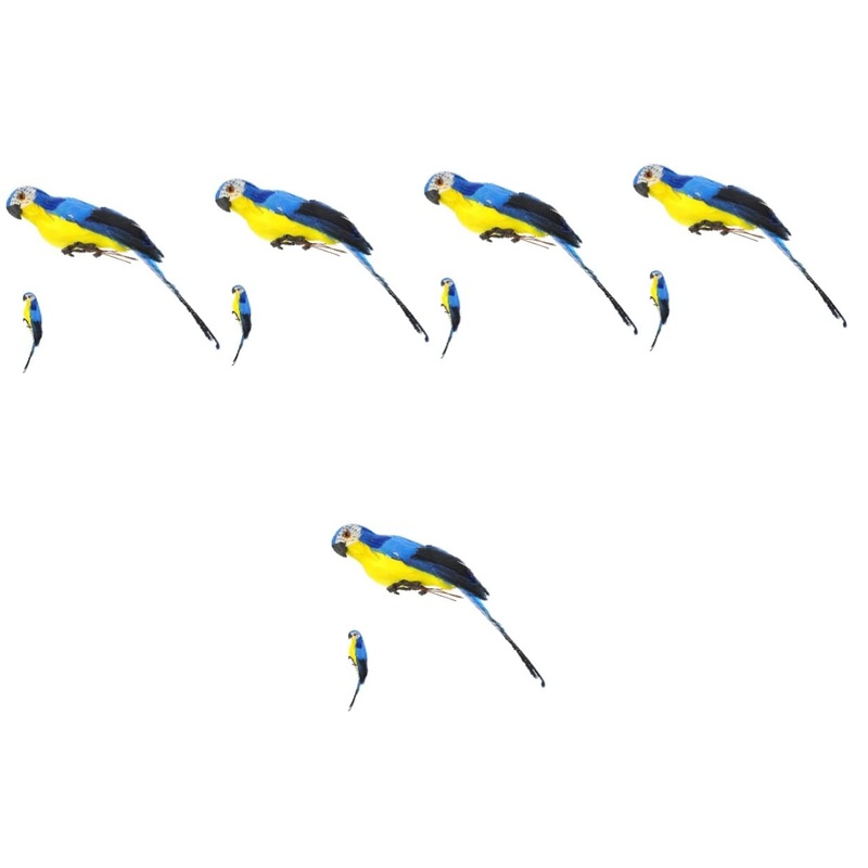 Package List 5 x parrot model Characteristics -Material:Foam, synthetic material decorative parrot adornment - Size: 20.00X5.00X4.00cm/7.86X1.97X1 tree animal birds statues. - Color: Blue artificial simulation foam bird - You can mount this parrot adornmen