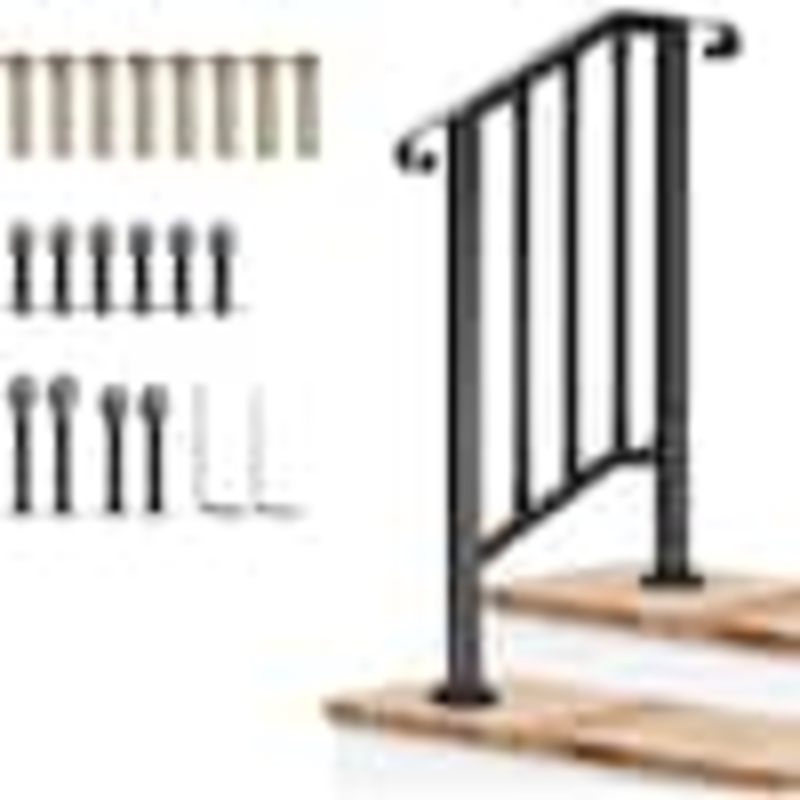 Made of high-quality iron for stability and durability, this handrail withstands harsh outdoor conditions, including rain and snow. Thick black powder coating reduces chance of peeling off, rust, scratches, and discoloration, making the railing easy to maintain and clean. This stair railing offers effortless adjustability to match your preferred-Step height, all without the need for rail modifications. This product not only provides essential support when ascending stairs but also ensures stability during rainy or wintry conditions, preventing slips on wet or icy surfaces.