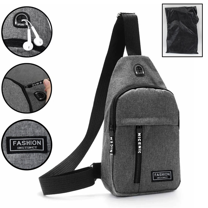Waterproof pack waist bag, Shoulder Bags Chest Men Casual fashion USB Charging earphone hook Sling Travel Bag (1 Pc)USB CHARGING PORT & HEADPHONE HOLE: This sling bag comes with a charging port, you can connect your phone to and easily charge during outdoo